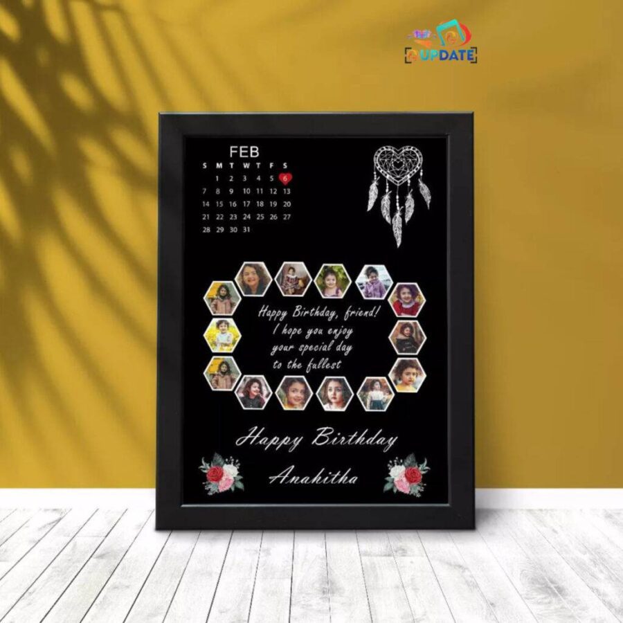 Celebrate friendship and heartfelt memories with this beautifully crafted birthday photo frame, designed to make your loved one’s special day unforgettable. With a charming calendar, personalized name, and joyful photo collage, this frame blends emotion, elegance, and creativity.