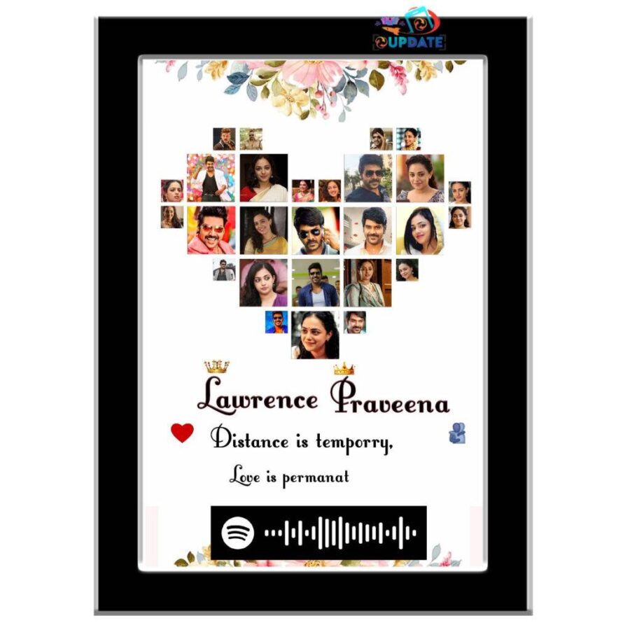 A tribute to love that bridges any distance. This personalized frame features a heart-shaped photo collage, adorned with floral accents and a Spotify code that plays your special song. Whether it’s for couples separated by miles or those celebrating timeless bonds, it turns emotional connection into beautiful art.